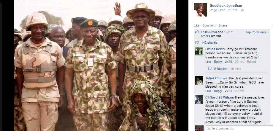 82 Likes 10 Shares Re: #NEVER AGAIN, As Nigerians Cheer GEJ On Facebook After Soldiers Visit by rozayx5(m): 7:26pm On Feb 27